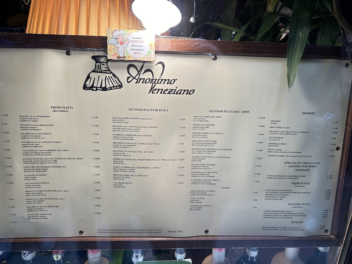 What truly sets this restaurant apart is its warm, inviting atmosphere. Guests highlight the cozy interior and enchanting backyard, making every meal feel special. The attentive staff further enhances the experience, ensuring that every guest feels valued and well cared for. As one patron noted, they felt right at home. Combine that with an excellent selection of wines, and you have a perfect spot for both casual dinners and celebratory meals. Restaurant Anonimo Veneziano is a must-visit for anyone looking to savor authentic Venetian cuisine.